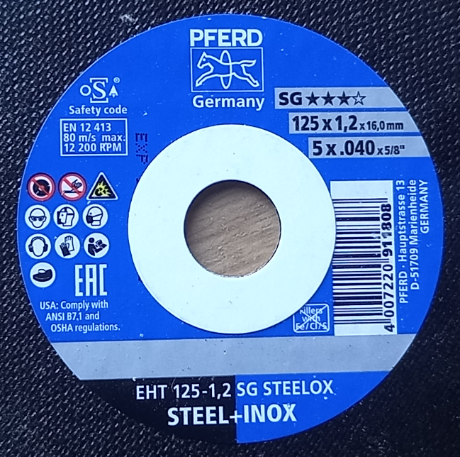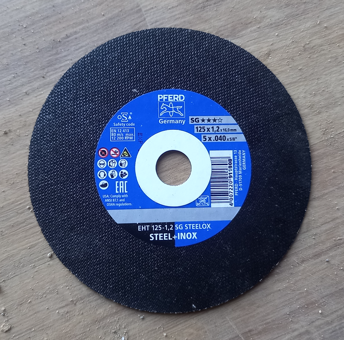 * 오늘 구매한 그라인더날이다 굉장히 많이 쓰이는 5인치 날인데 강철, 쇠파이프, 배관, 스테인리스 소재 등을 자르는데 쓰인다.