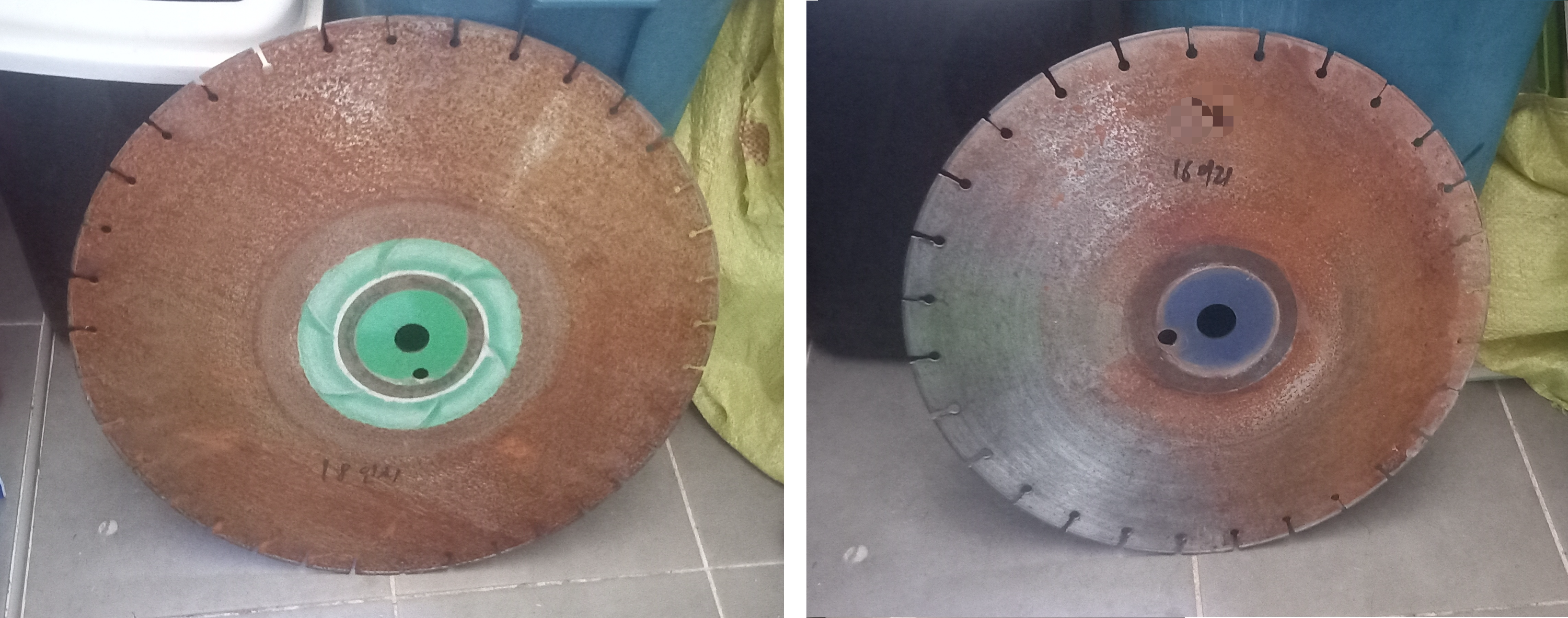 * 커팅날은 다이아몬드로 만들어진 날이 달려있는데 그 다이아몬드 날이 닳게 되면 마모가 된다. 그리고 3미리 정도 남게 되면 경계석 등을 자를 때 잘 잘라지지 않아서 커팅날을 교체 해야한다.