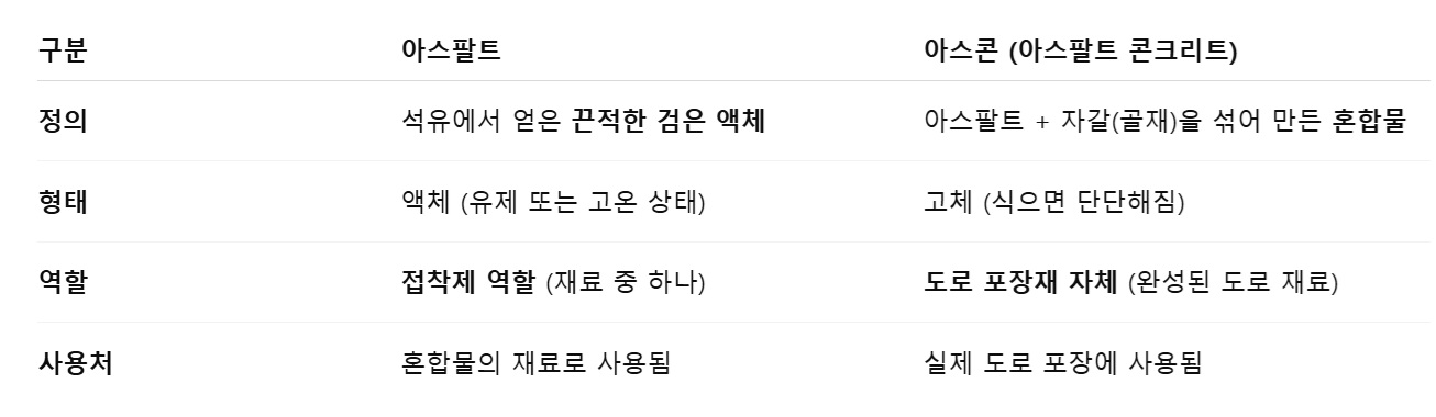 <아스팔트와 아스콘의 차이>