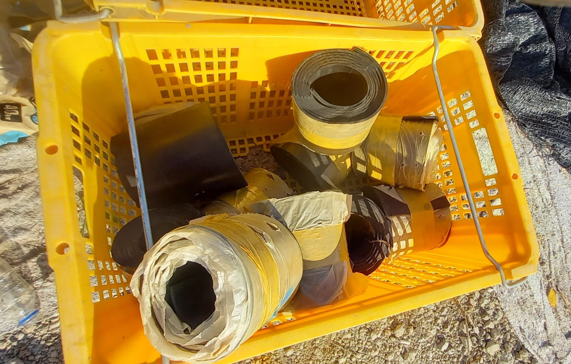 완전 새것인 배관을 반납하는 경우에는 배관에 흠집이 나면 안 되기 때문에, 츄레라 받침대에 고무라바와 테이프로 보호를 할 테지만 이번 건은 고철 배관을 반납하는 것이므로 고무라바를 사용하지 않아도 된다고 한다.