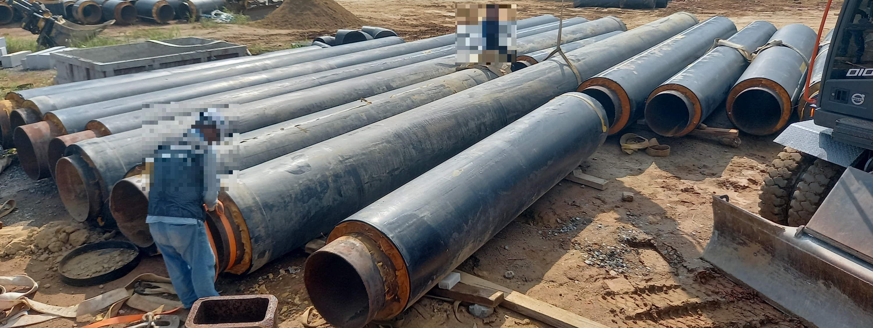 위 사진을 보면 이미 사용되고 남은 중고 열배관이 보인다. 흠... 고철이긴 하다... 비싼 고철... 저거를 본사로 옮겨야 하는데 츄레라로 옮긴다.