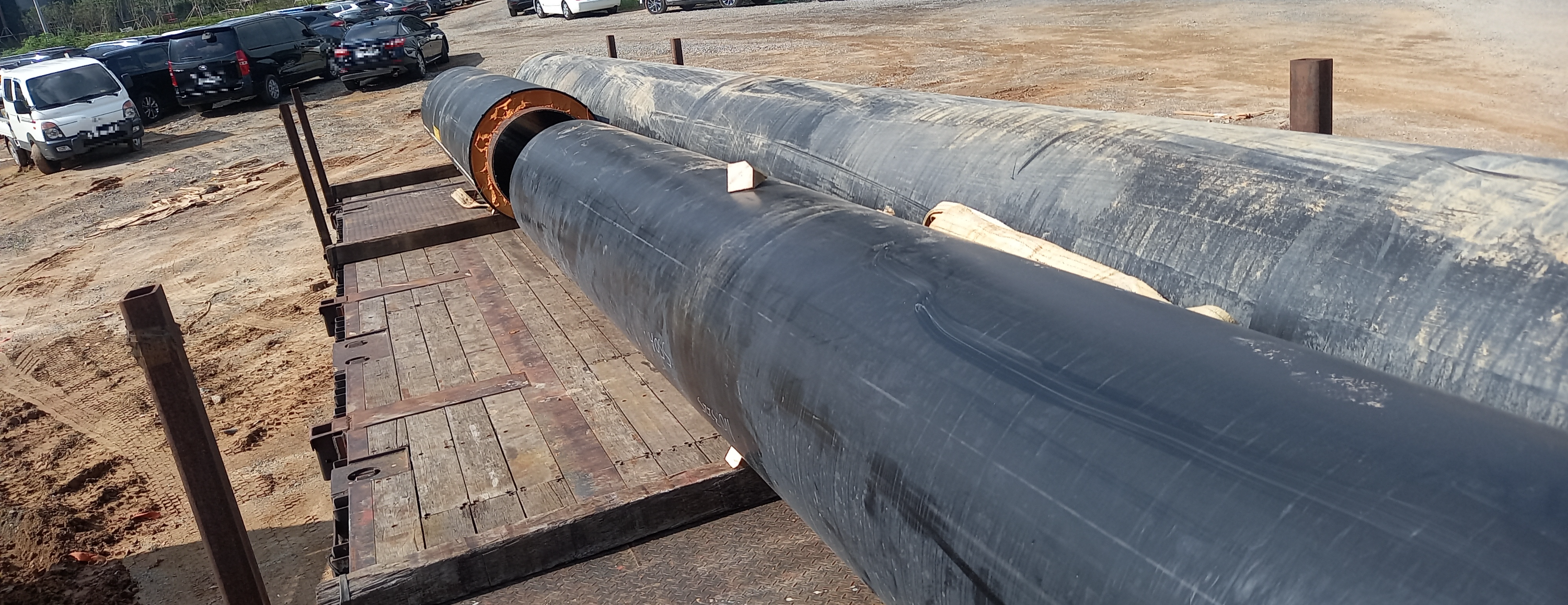 맨 바깥쪽부터 상차를 하고 사진에 보이듯이 미리 만들어 놓았던 쐐기를 배관 한 개당 가운데에 놓아줘도 된다. 되도록이면 더 있으면 좋겠지만... 쐐기가 만들기가 쉽지가 않다... 츄레라 1대당 쐐기가 3개에서 4면 다 되는 것 같다...