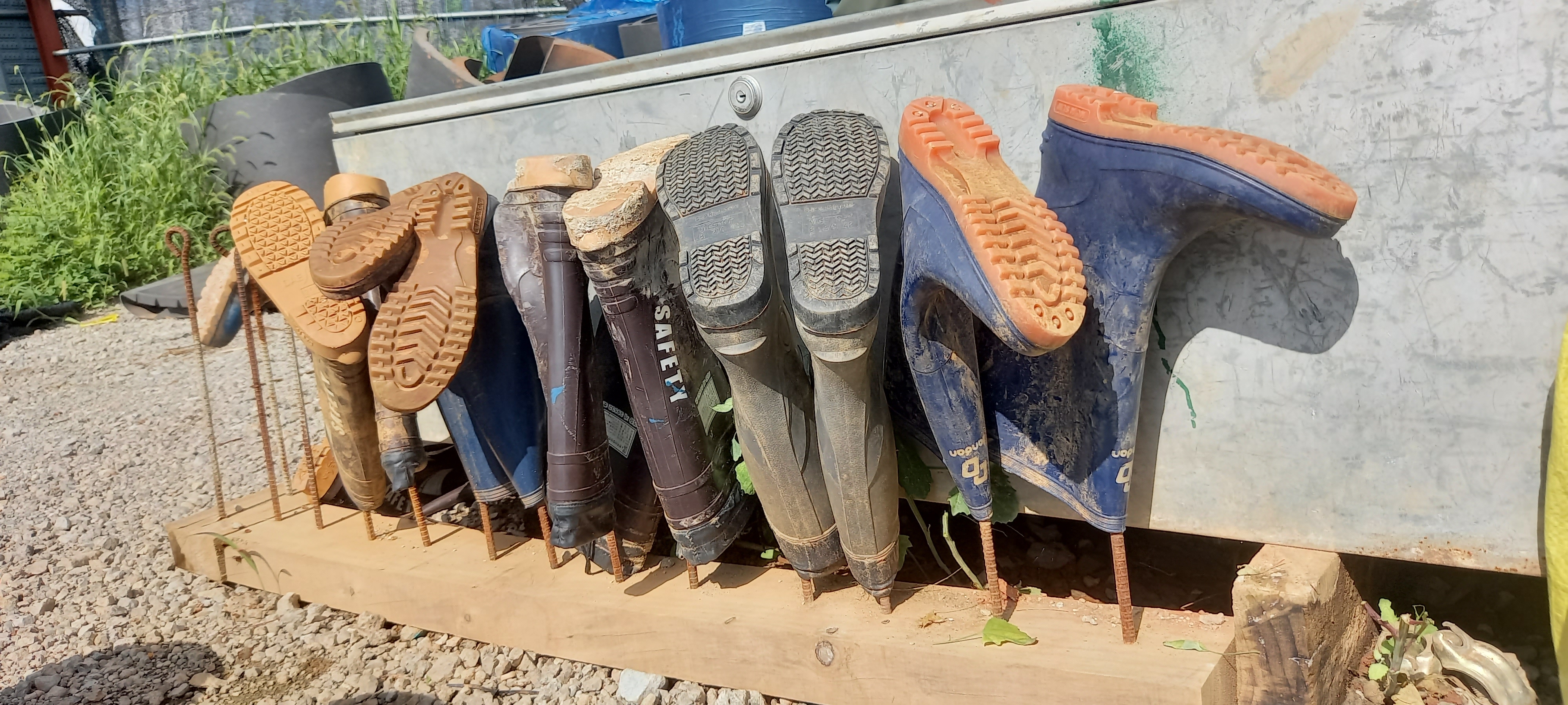 * 위 사진처럼 도리판에 긴 쇠말뚝을 박아주고 장화를 거꾸로 세워 걸어두면 비가 와도 문제가 없이 보관이 된다. 그리고 장화 안에 물이 들어갔을 때도 저렇게 해놓으면 장화 안의 물이 다 내려가서 장화가 마르게 된다.