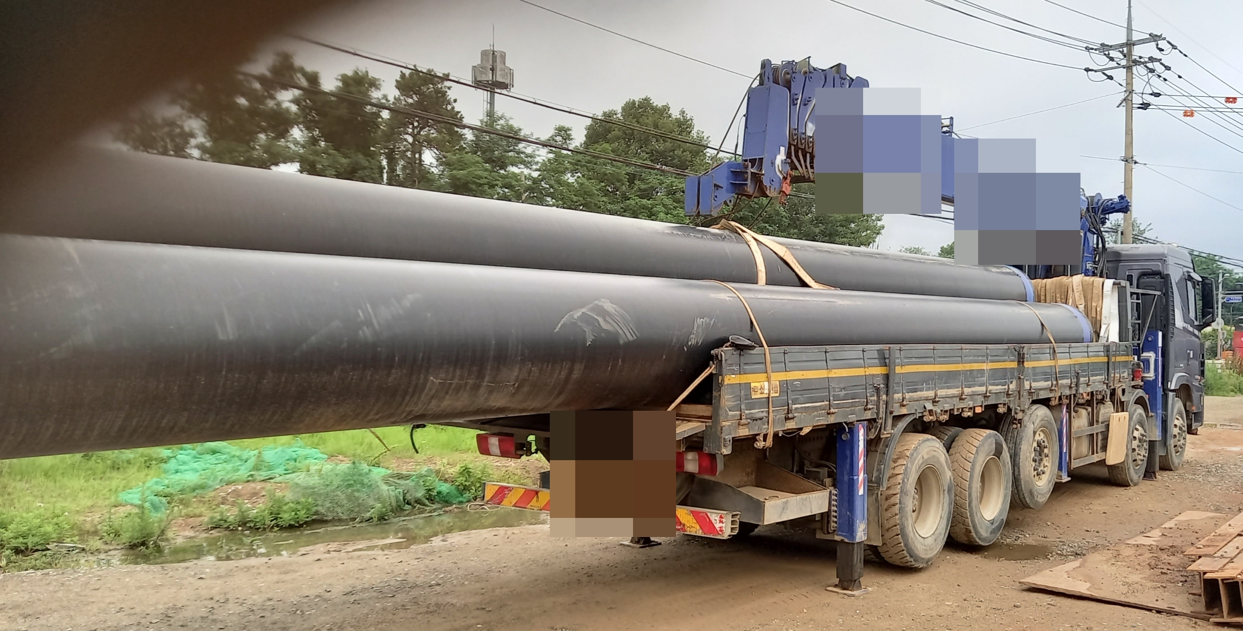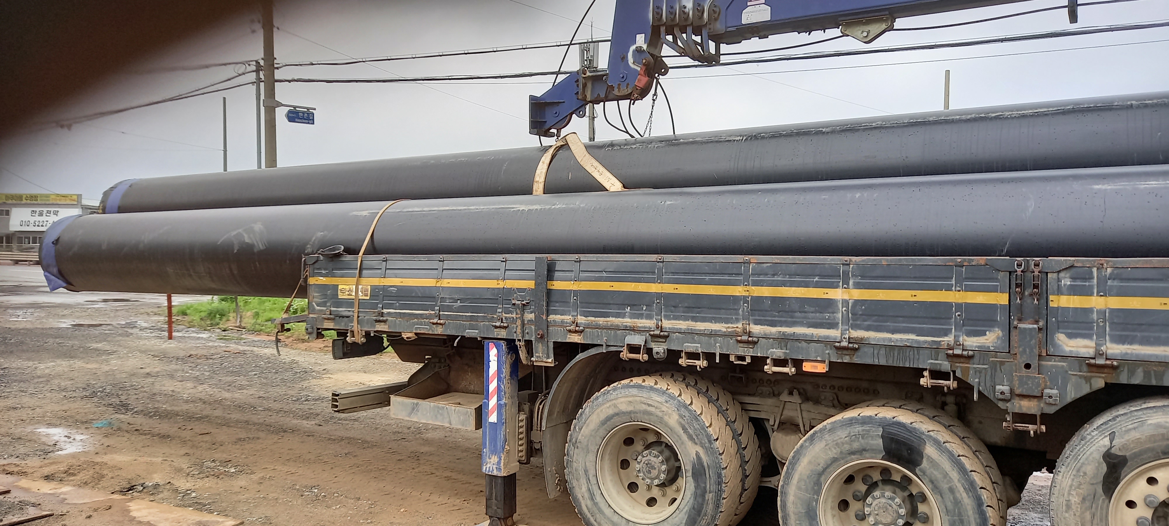 2) 위에 같은 12미터 짜리 긴 배관이 올라갈 경우에는 위의 사진처럼 라이씽을 한다.