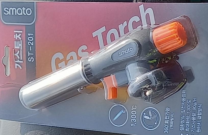 이 토치는 Smato 가스 토치인데... 이거는 버튼식이라 점화할 때 라이터가 필요없고 성능은 괜찮은데... 잘 고장이 나서 불편했다. 그래서 웬만하면 비추천한다...