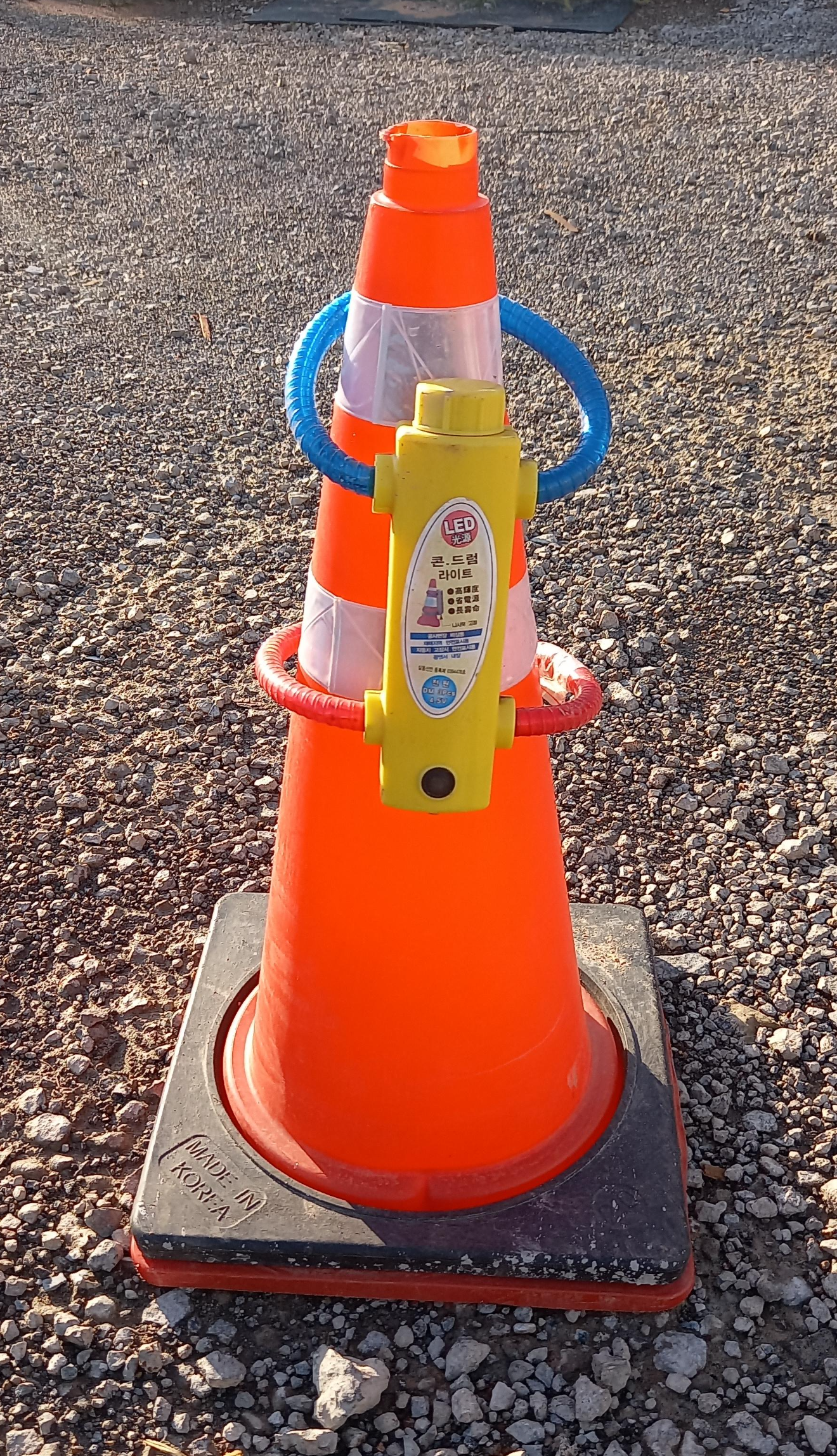 콘용 바르샤를 설치한 모습이다. 태양열 자동 충전이고 스위치를 켜두면 밤이 돼서 어두울 때 자동으로 반짝반짝 작동을 한다.