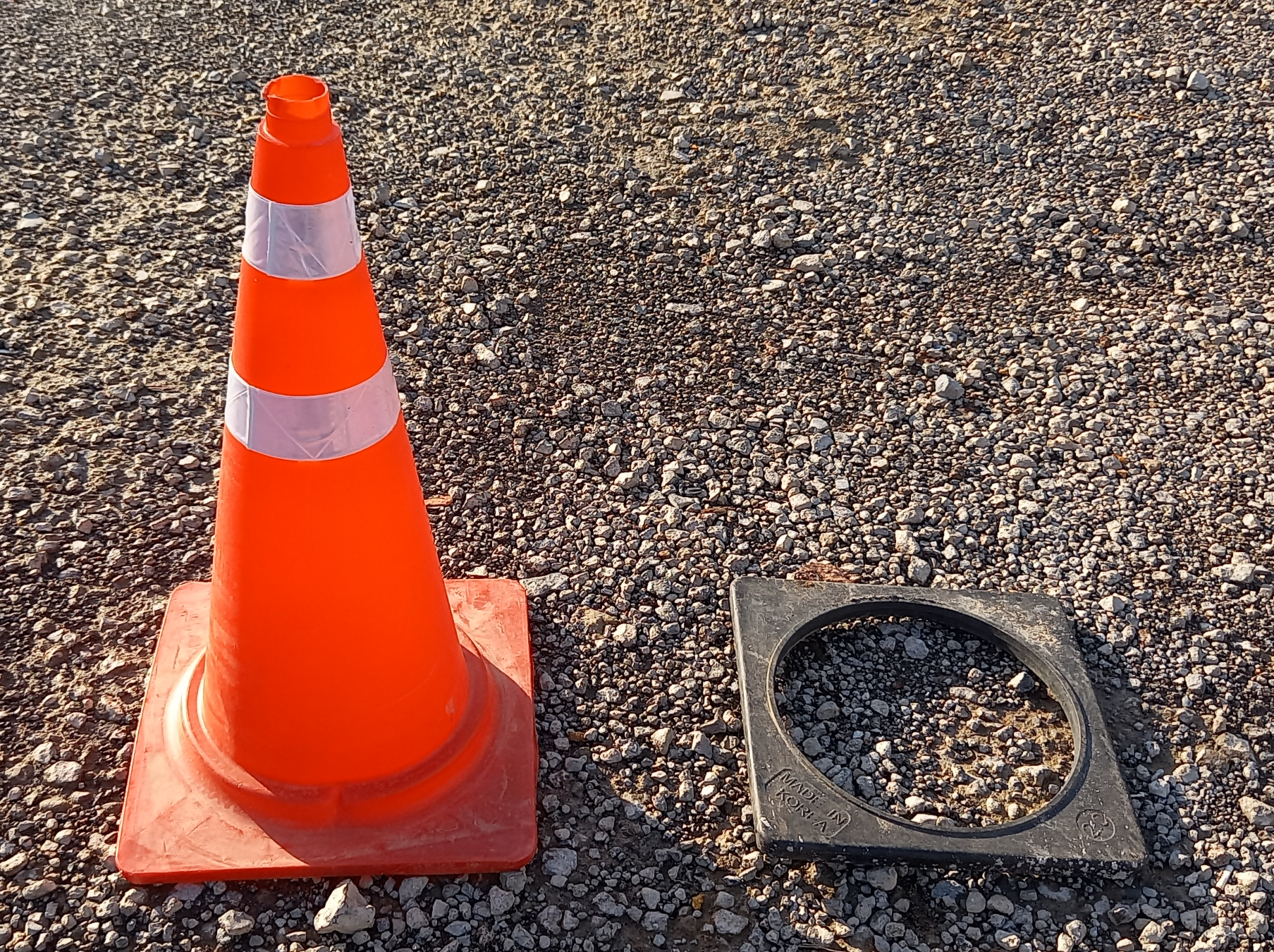 위 사진은 라바콘과 고무판이다. 2개는 하나로 합쳐질 수가 있다. 고무판은 라바콘의 무게를 무겁게 해서 라바콘이 쉽게 넘어지지 않도록 해준다.