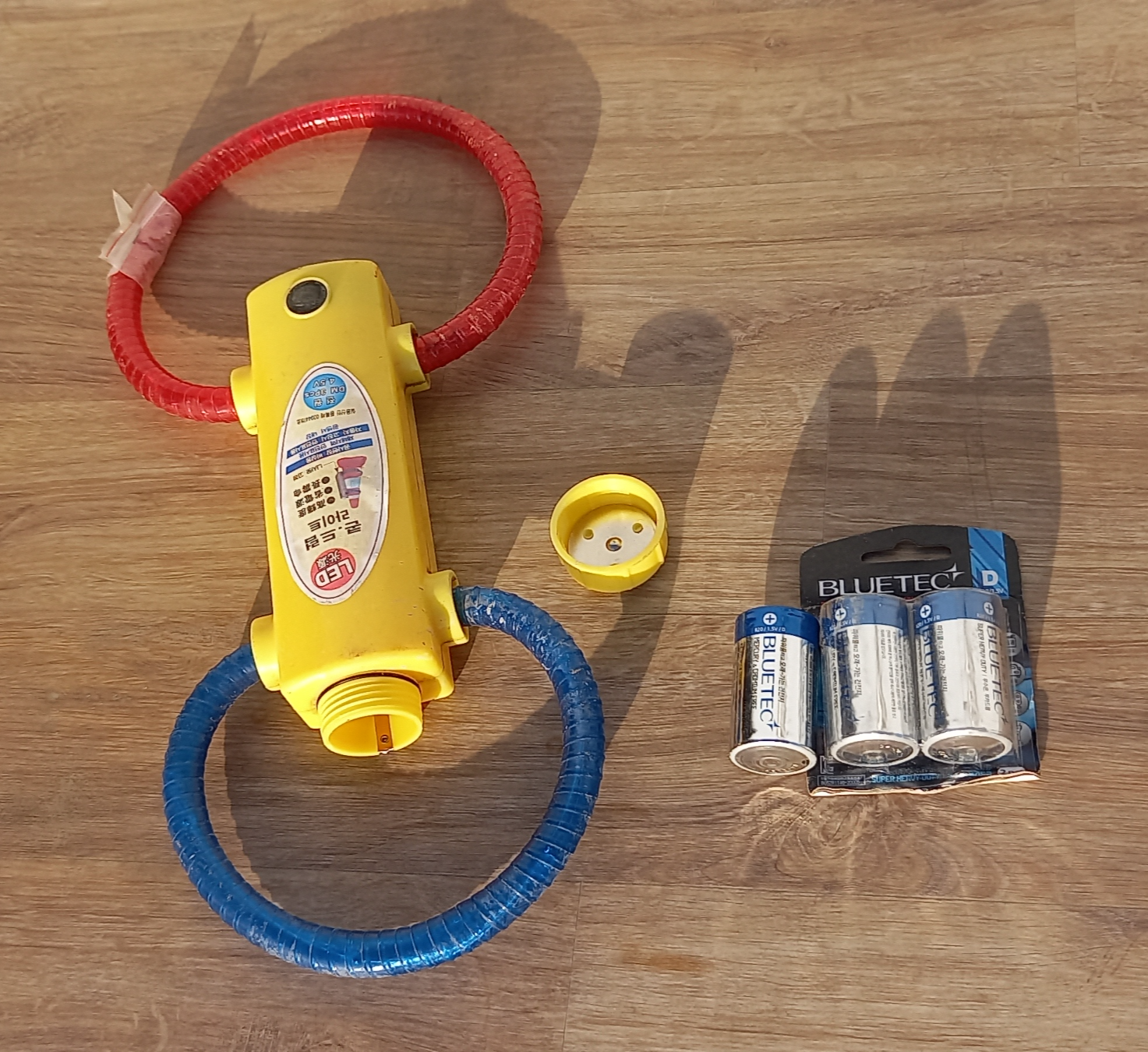 콘,드럼라이트는 커다란 D형 건전지 3개가 들어간다. 즉, 태양열로 자동 충전되는 것이 아니다. 그리고 전원도 검은색 버튼을 수동으로 눌러야 작동한다.